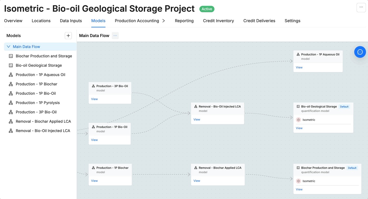 Mangrove’s configurable production and quantification modeling allows Charm to account for both bio-oil and biochar within a single platform, without duplicating data submissions. Using a mass balance accounting approach, Mangrove tracks material flows and greenhouse gas emissions throughout the system, then allocates emissions profiles proportionally based on the carbon mass of each product output. This ensures accurate, protocol-aligned accounting for both streams while significantly reducing operational complexity and data reporting.
