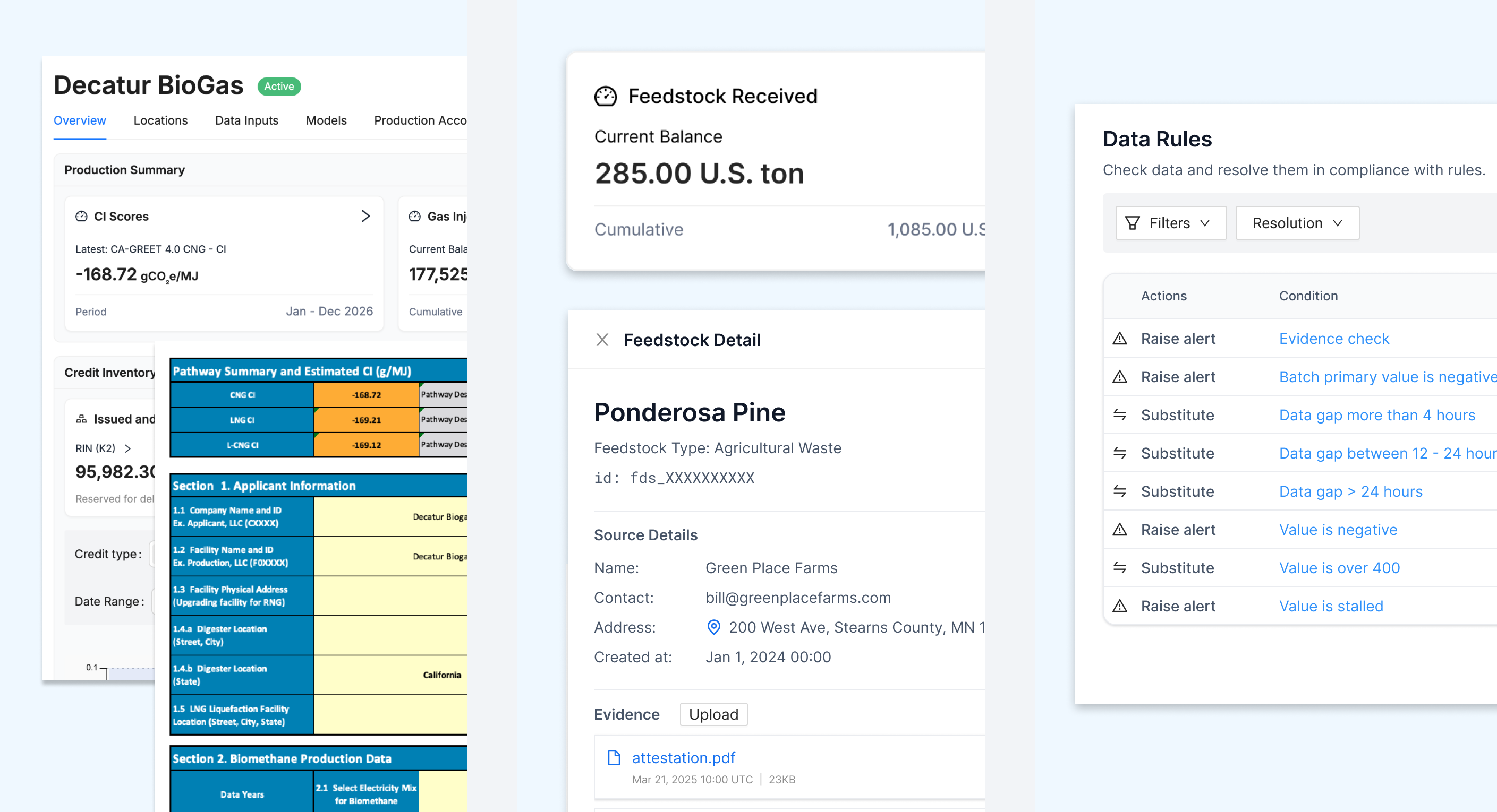 Mangrove gives renewable fuels producers a system to perform accounting and comply with programs, making it easy to run production into ISCC, CFR, LCFS, RFS, 45Z, and voluntary markets without spreadsheet rework.